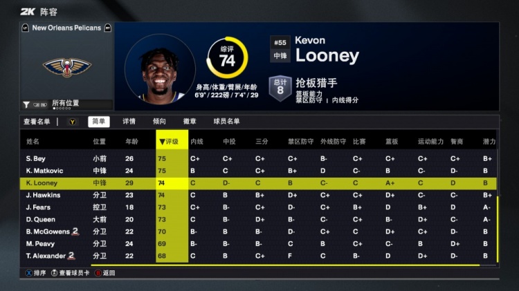 8月30日讯 今日NBA2K26正式发布,鹈鹕队球员能力值如下: