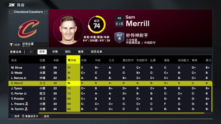8月30日讯 今日NBA 2K26正式发布,骑士队球员能力值如下:
