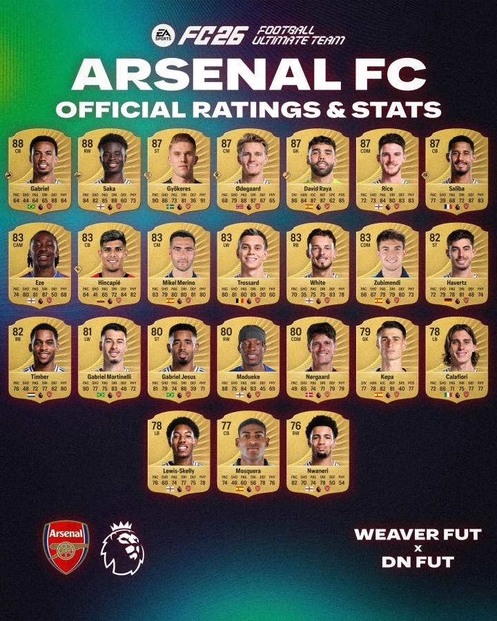 09月07日讯 足球游戏FC26英超各球队球员的评分曝光,其中萨拉赫以91的评分领衔全英超,范迪克、罗德里、哈兰德也获得了90的评分。