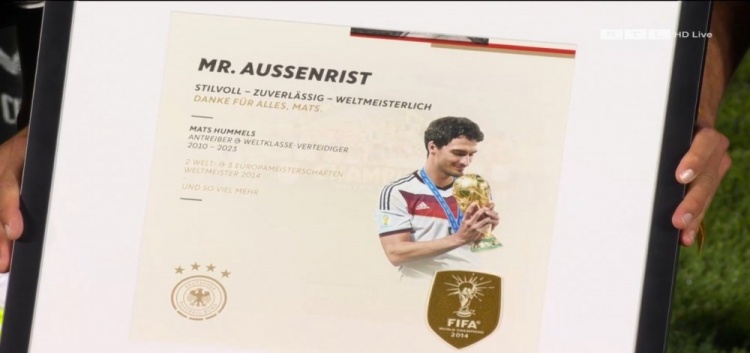 德国队赛前为胡梅尔斯办致敬仪式:外脚背先生,感谢你的一切