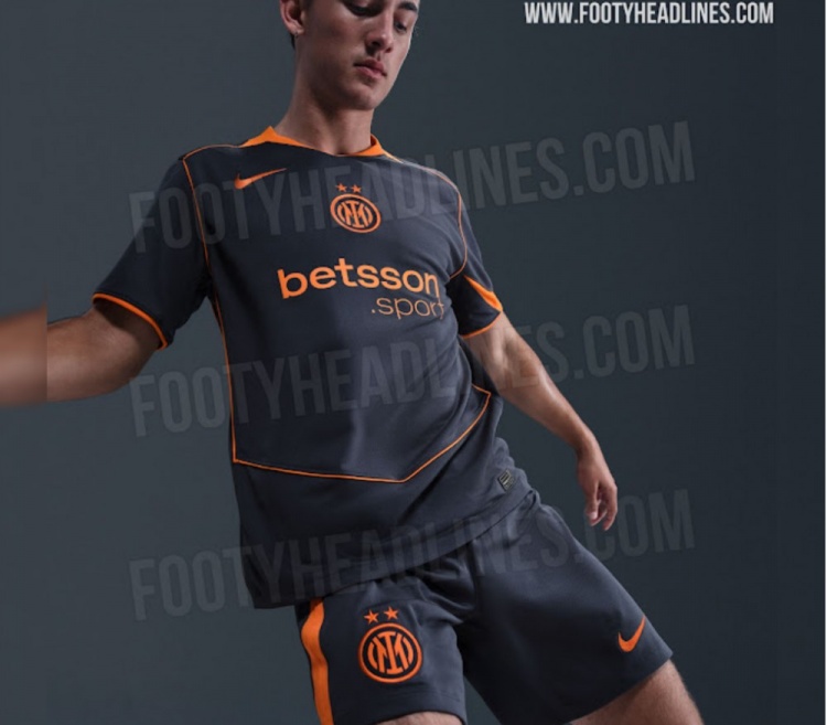 这款球衣采用深蓝色(雷霆蓝)为主色调,并配以醒目的橙色标志和装饰(安全橙)。设计灵感来源于2000年代中期的Total 90系列,这款耐克为国际米兰打造的25-26赛季第三球衣将于2025年9月上市。