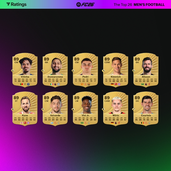 09月08日讯 今日EA官方公布FC26球员评分排行,萨拉赫、姆巴佩91分最高,登贝莱90分,亚马尔89分。