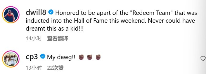 今天,德隆-威廉姆斯晒出了名人堂的照片,并写道:“非常荣幸能够成为‘救赎之队’的一员,并在本周末入选名人堂。这是我小时候做梦都想不到的事情!”