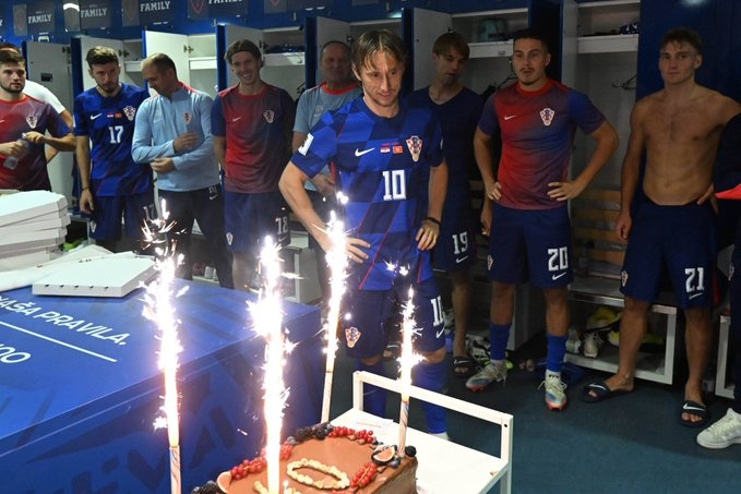 传奇!克罗地亚全队为莫德里奇庆祝40岁生日
