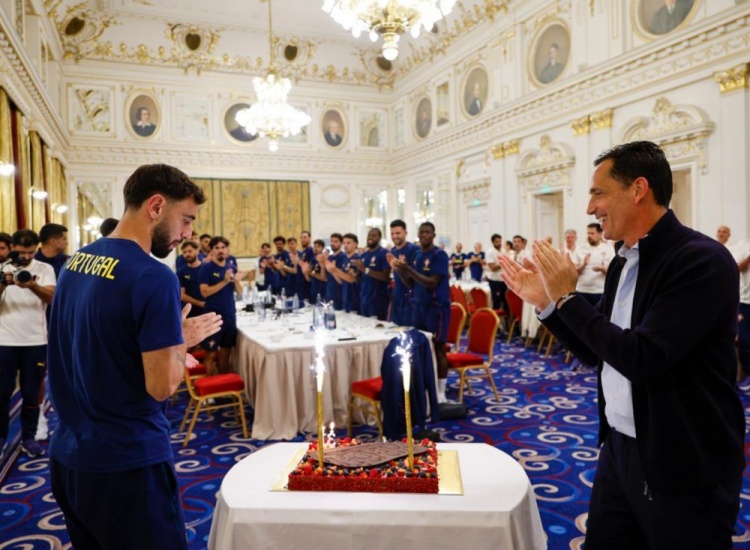 9月9日讯 9月8日是葡萄牙中场布鲁诺-费尔南德斯的生日,由于适逢国际比赛日,曼联队长和国家队队友度过了一个难忘的生日。