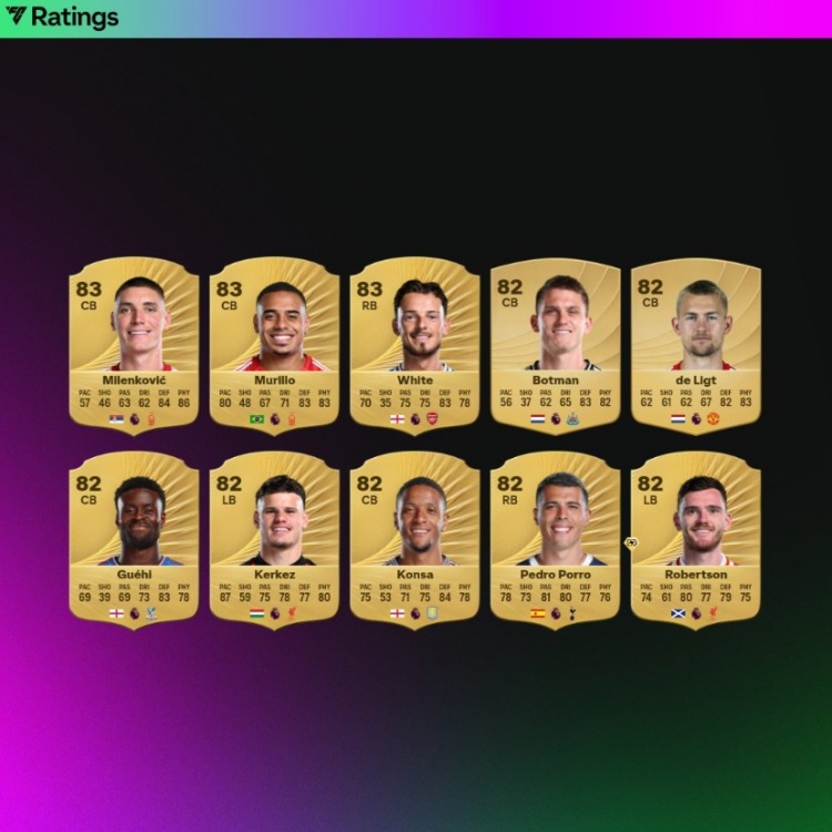 FC26英超评分top20后卫:范迪克90分居首,阿森纳双中卫二三位