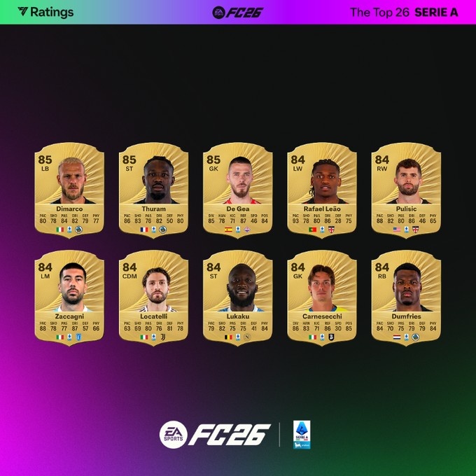 FC26官方意甲球员评分榜:劳塔罗88最高,德布劳内和迈尼昂87