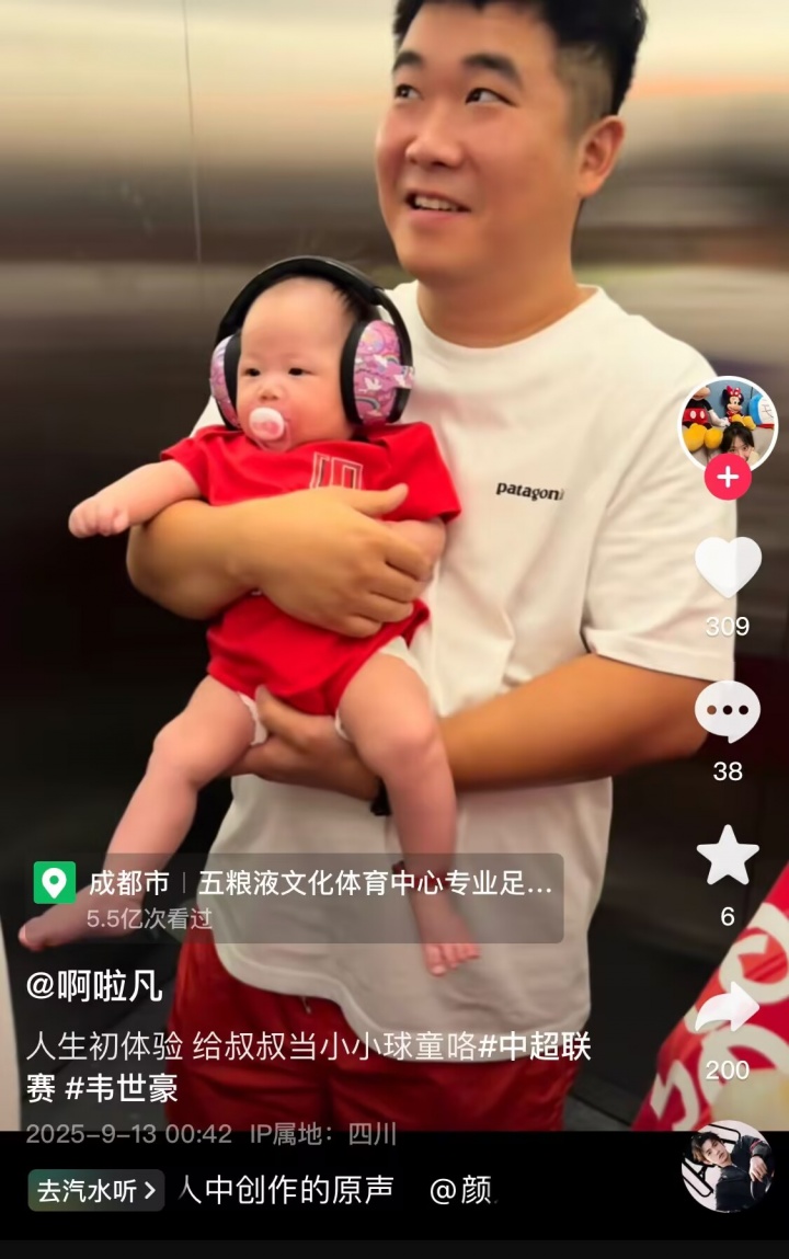 不过根据id名为“啊啦凡”的蓉城球迷晒出视频,韦世豪抱的小小球童是他的孩子。