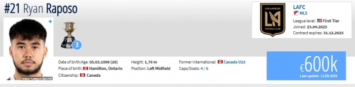 09月13日讯 德转于昨日更新了美职联的身价,华裔球员伍小海身价3连跌,仅剩60万欧。
