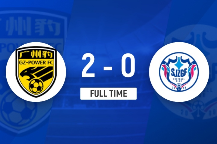 全场比赛结束,广东广州豹主场2-0战胜石家庄功夫。