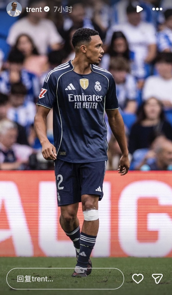 面对皇家社会,替补登场的阿诺德帮助皇马客场全取三分。阿诺德更新社交媒体庆祝胜利:+3,加油!