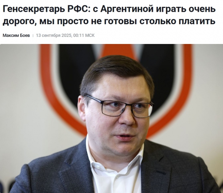 米特罗法诺夫:“这不是日程的问题,而是与这些国家队进行原则性谈判的问题。我不得不说,与阿根廷比赛的费用非常昂贵。大概1000万美元?这个数字已经是谨慎的说法了。我们没有准备好支付这么高昂的费用。当然,如果有赞助商并商谈到一个合理的价格的话,我们确实非常想和他们比赛。”