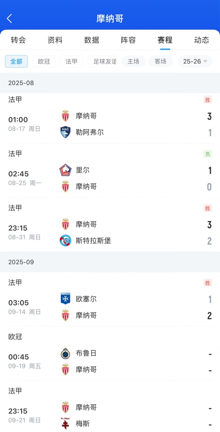 09月14日讯 法甲第4轮,摩纳哥客场2-1击败欧塞尔,新援博格巴和法蒂继续缺席,新赛季4轮均未入选比赛名单。