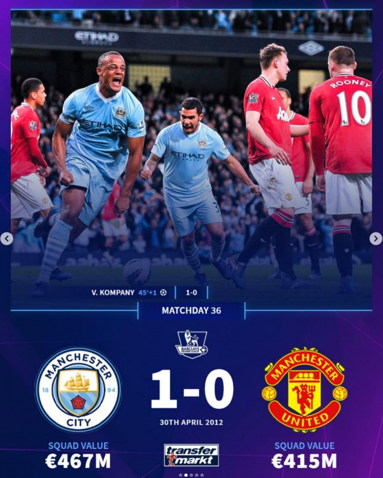 9月14日讯 本轮英超将迎来焦点战曼市德比,德转也盘点了两支球队在近些年的一些经典比赛,具体如下: