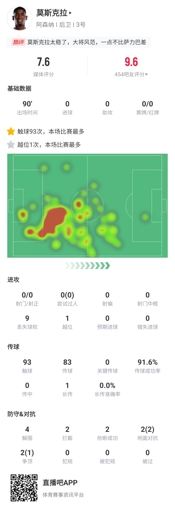 09月14日讯 英超第4轮,阿森纳3-0击败诺丁汉森林,本场比赛顶替受伤的萨利巴先发的莫斯克拉发挥出色,受到球迷一致好评。