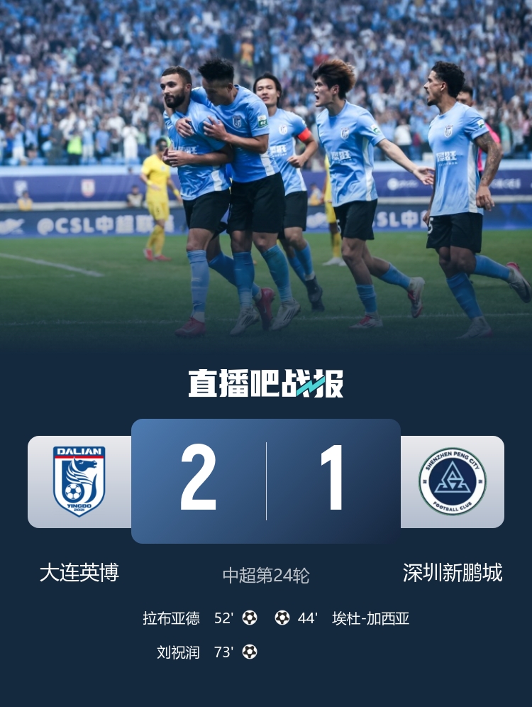 最终,大连英博2-1深圳新鹏城。
