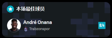 在全场评分中,虽然球队输球,但奥纳纳以8.4分获评全场最高分。