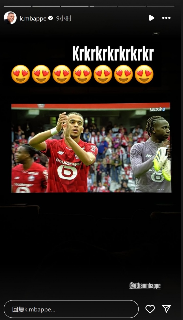 这也是伊桑-姆巴佩职业生涯的处子球,姆巴佩社媒晒出伊桑-姆巴佩的照片,对弟弟表示祝贺,配文:“新星!”