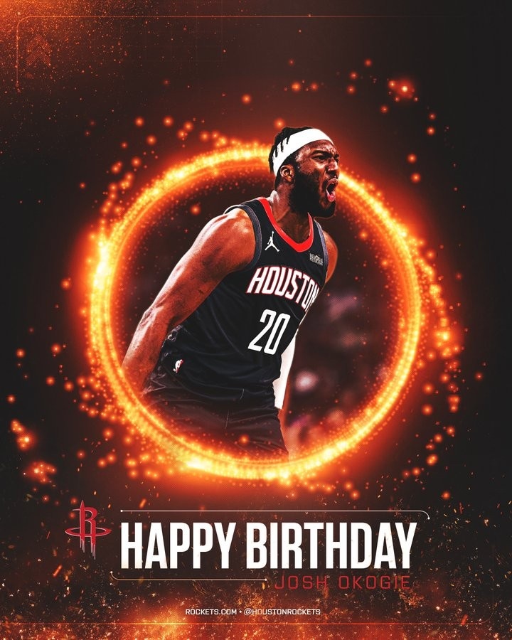 锋线蓝领!火箭官推晒图祝新援约什-奥科吉27岁生日快乐🎂