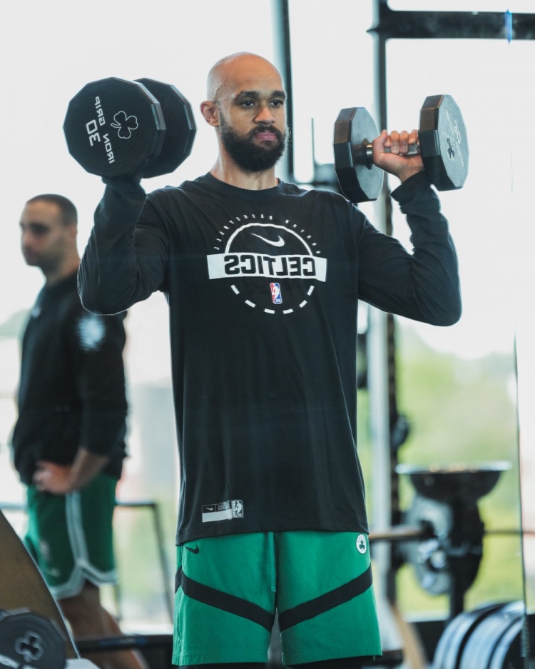 小白开练!凯尔特人官方晒德里克-怀特训练照
