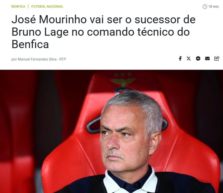 据悉,穆里尼奥将接替布鲁诺-拉热,出任本菲卡的新任主教练。62岁的穆帅将与本菲卡签约一年,并时隔21年重回葡萄牙足坛执教。同时他也是时隔25年回归本菲卡执教