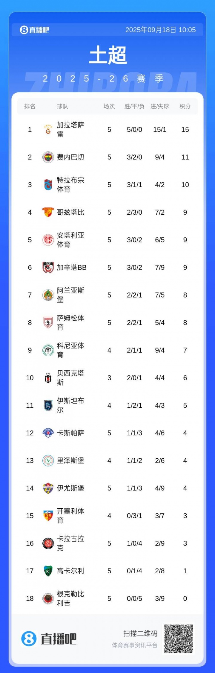 加拉塔萨雷已经土超三连冠,费内巴切则是土超四连亚(上次夺冠是13/14赛季),后者始终翻越不了加拉塔萨雷这座山。本赛季一开始,猛将如云的加拉塔萨雷凶猛无比,狂轰15球仅1失球豪取5连胜,本赛季土超难道又大结局了吗?