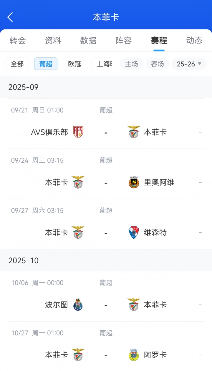 穆帅的本菲卡首战是9月21日1点,葡超客场挑战AVS俱乐部,10月6日,他将带队客场挑战老东家波尔图。