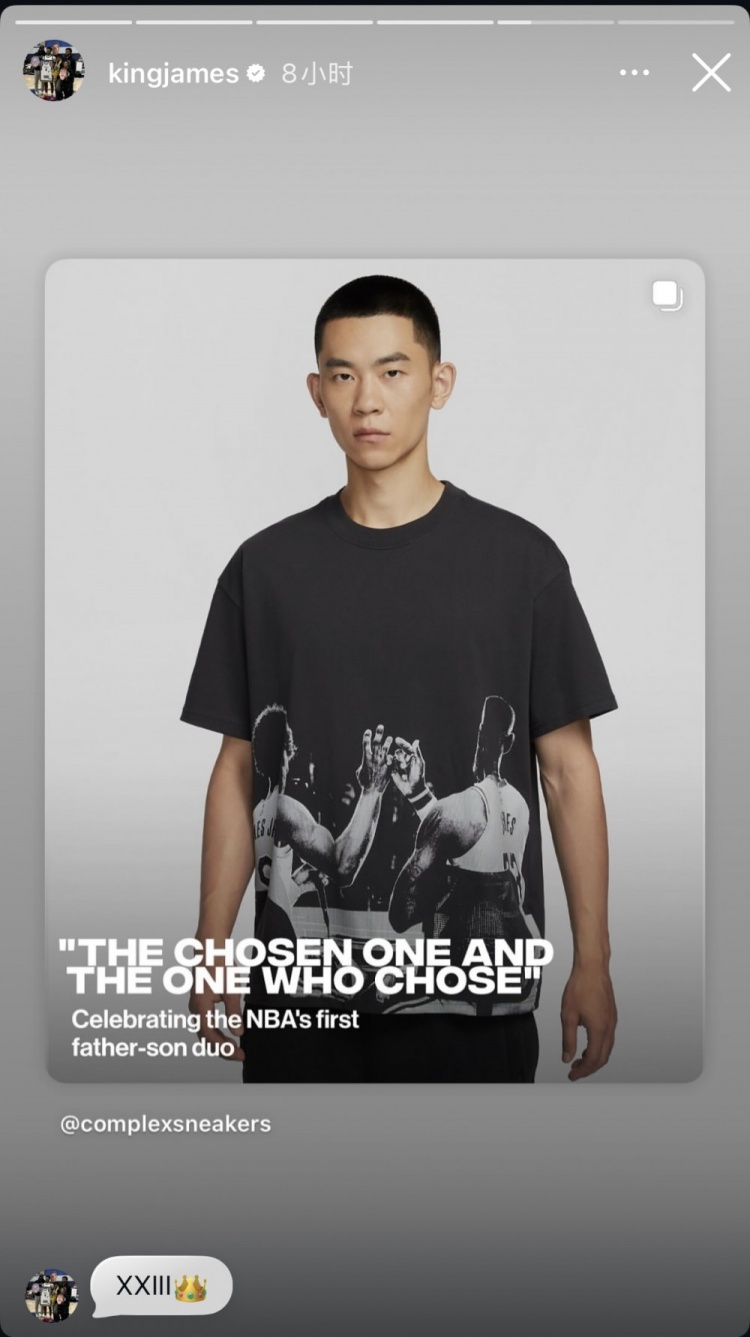 詹姆斯转发评论道:“XXIII(注:罗马数字23)👑”