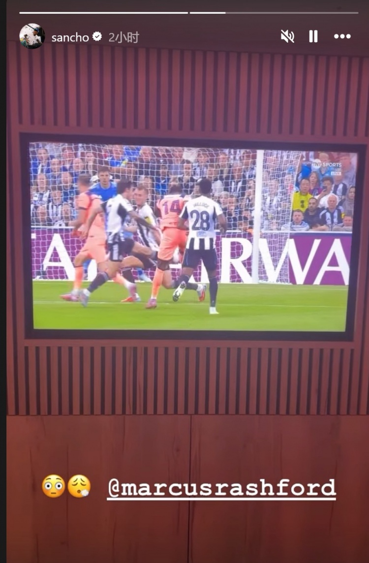 拉什福德的前队友桑乔也在关注这场比赛,并在社媒晒出拉什福德的进球视频。