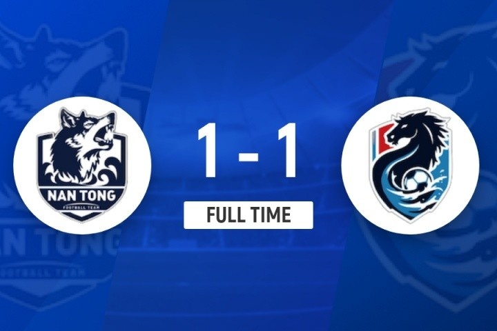 伤停补时3分钟。全场比赛结束,南通队1-1淮安队。