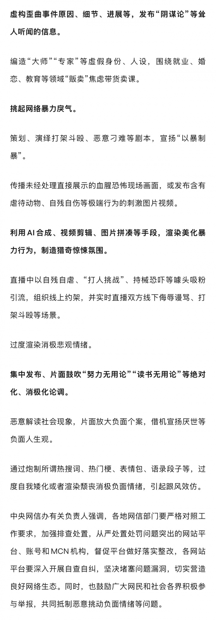 网信办开展"清朗·整治恶意挑动负面情绪问题"行动,包括体育饭圈