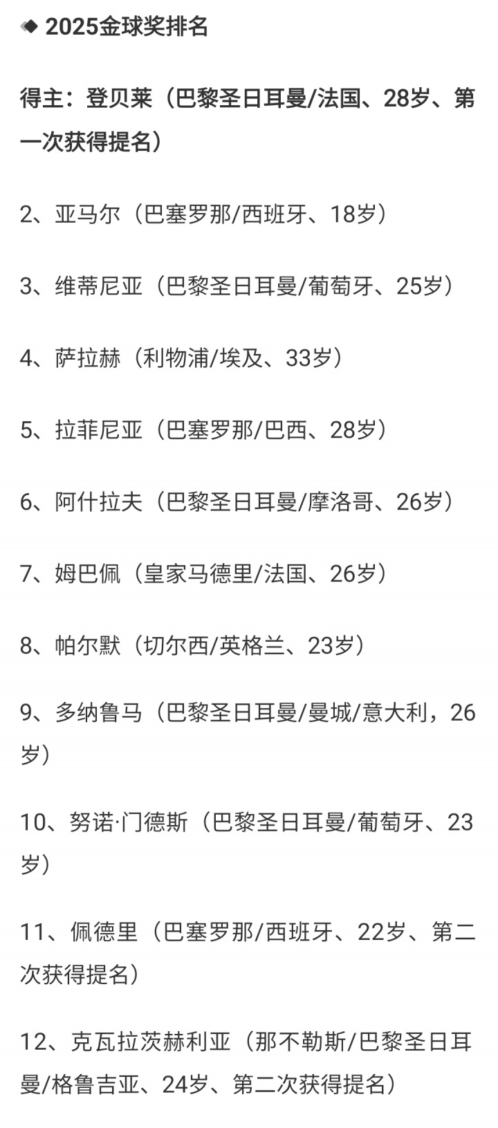 骆明表示:恭喜登贝莱获得金球奖。不过我的选票还不能公布,因为《法国足球》杂志今年特地要求,具体选票不能先于他们公布。我只能暗示一下,我的选票前五与最后前五(下图)人选一致,有三人顺序也一样,只有两个人顺序差了一位。您大概可以猜到我的选票了。 ​​​
