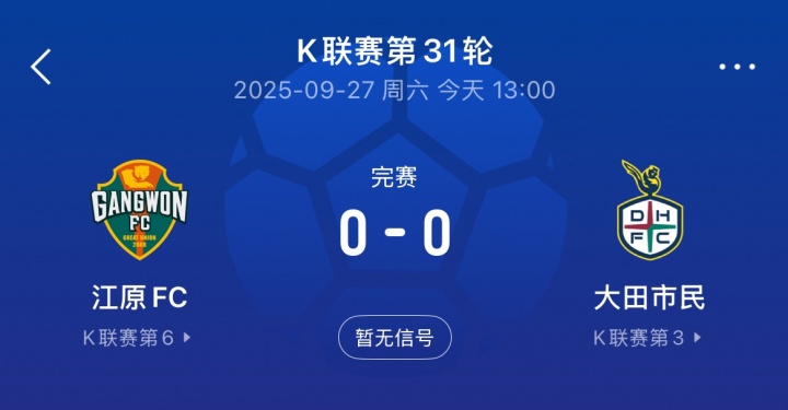 09月27日讯 K联赛第31轮今天结束的两场比赛,两支中超球队接下来的亚冠对手均收获平局。