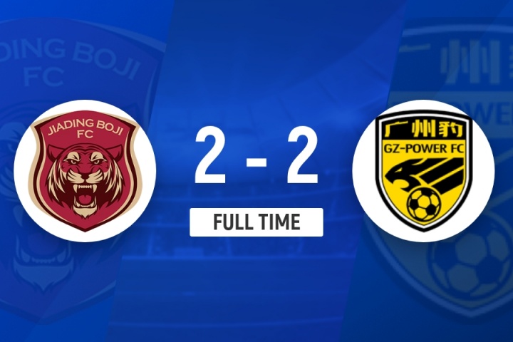 全场比赛结束,上海嘉定汇龙2-2广东广州豹。