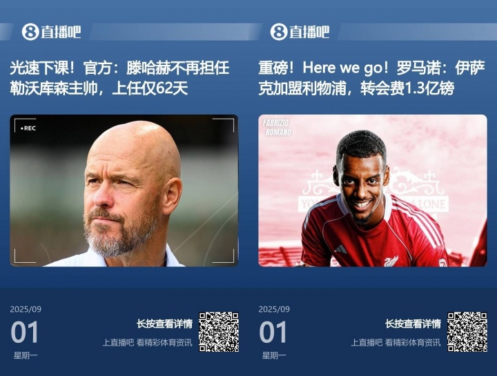 09月02日讯 新赛季夏窗已经结束,伊萨克在截止日成为标王,同时也成为了转会窗的第一流量王。然而他却不是头条新闻。昨日,勒沃库森主帅滕哈赫的光速下课,成为了头条。