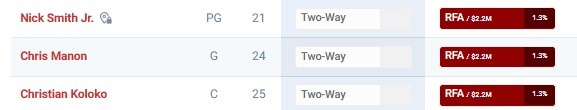 在签下小尼克-史密斯之后,湖人已经有三份双向合同,双向合同名额已满,分别是:小尼克-史密斯、科洛克和克里斯-马农。