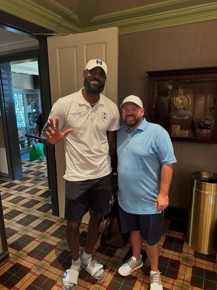 人生乐趣!职业高尔夫球手晒与詹姆斯合照:很高兴见到你!