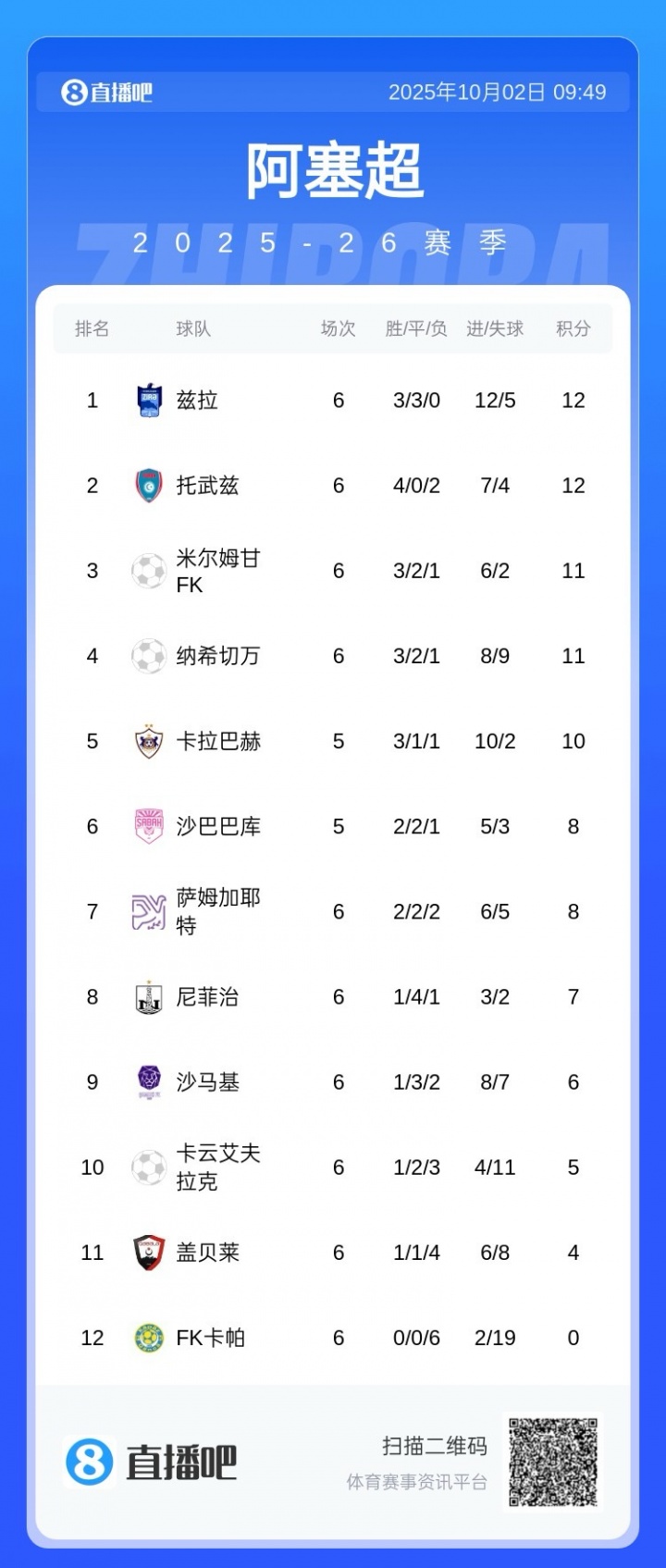 卡拉巴赫目前联赛少赛一场,暂列阿塞拜疆超的第五,与第一只差2分。在本赛季欧冠联赛中,首轮卡拉巴赫在两球落后的情况下,3-2大逆转本菲卡。赛后本菲卡的主帅拉热也被解雇。