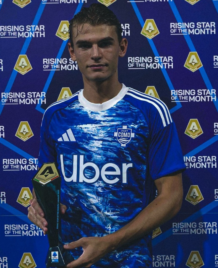 9月16日讯 意甲第3轮比赛,科莫在主场迎战热那亚。本场比赛之前,科莫中场尼科-帕斯领取了8月意甲最佳新星(最佳U23球员)奖。