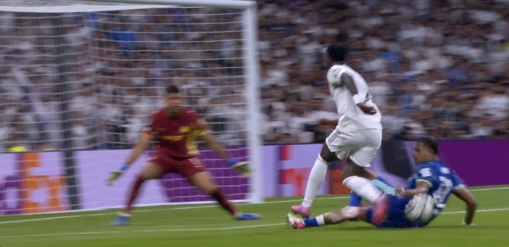 梅迪纳反弹手球被判点!姆巴佩点射双响,皇马反超比分!