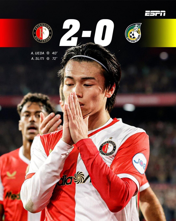 在荷甲第3轮补赛中,上田绮世再入一球助费耶诺德2-0福图纳锡塔德,而费耶诺德也以5战全胜领跑积分榜。