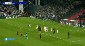 09月19日讯 欧冠联赛阶段第1轮 哥本哈根主场迎战勒沃库森,比赛第82分钟,格里马尔多任意球进球,勒沃库森1-1扳平,这是他2场比赛打进的第3个任意球。