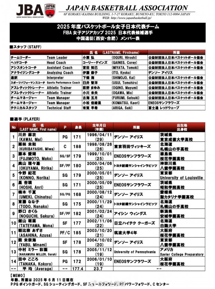 6月11日讯 日本女篮公布了本月与中国女篮进行热身赛的球员名单,高田真希、林咲希、町田瑠唯等名将均不在列。