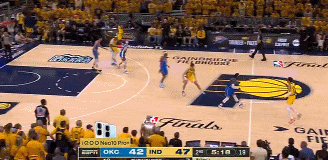 6月12日讯 NBA总决赛G3,步行者半场64-60领先雷霆。