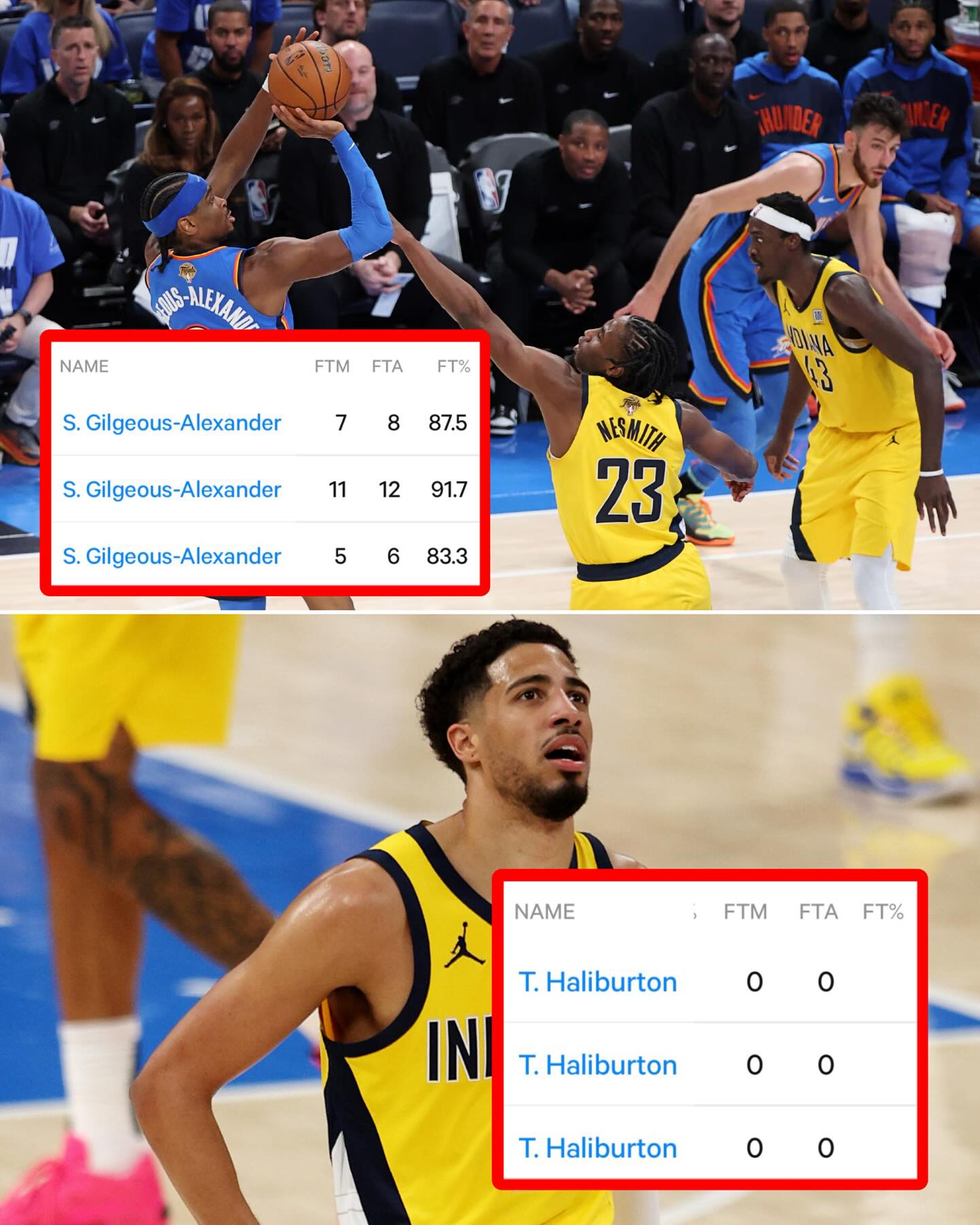😯差距太大!总决赛至今三场SGA罚球26次 哈利伯顿一次都没有