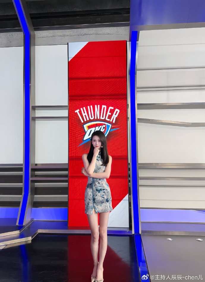 赛后,美女主持人辰辰晒出一组个人照并写道:“辰的第一次总决赛主持🔚~步行者真是充满魔法的球队。期待下一场了!!”