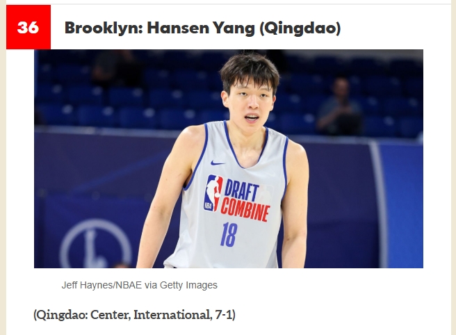 试训过~😍模拟选秀:杨瀚森第36顺位被篮网选中 较上期提升7名