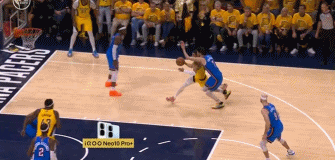 强硬!哈利伯顿强打霍姆格伦高难度上篮得手 后者疑似再度崴脚