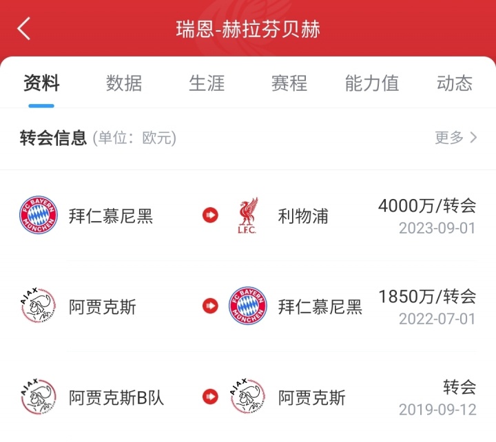 而在2023年夏窗,拜仁同样以4000万欧的转会费将赫拉芬贝赫卖至利物浦,如今赫拉芬贝赫坐稳了利物浦主力,身价涨至7500万欧。