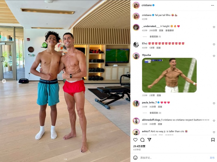有其父必有其子📸40岁C罗晒与14岁迷你罗赤膊照 迷你罗又长高了